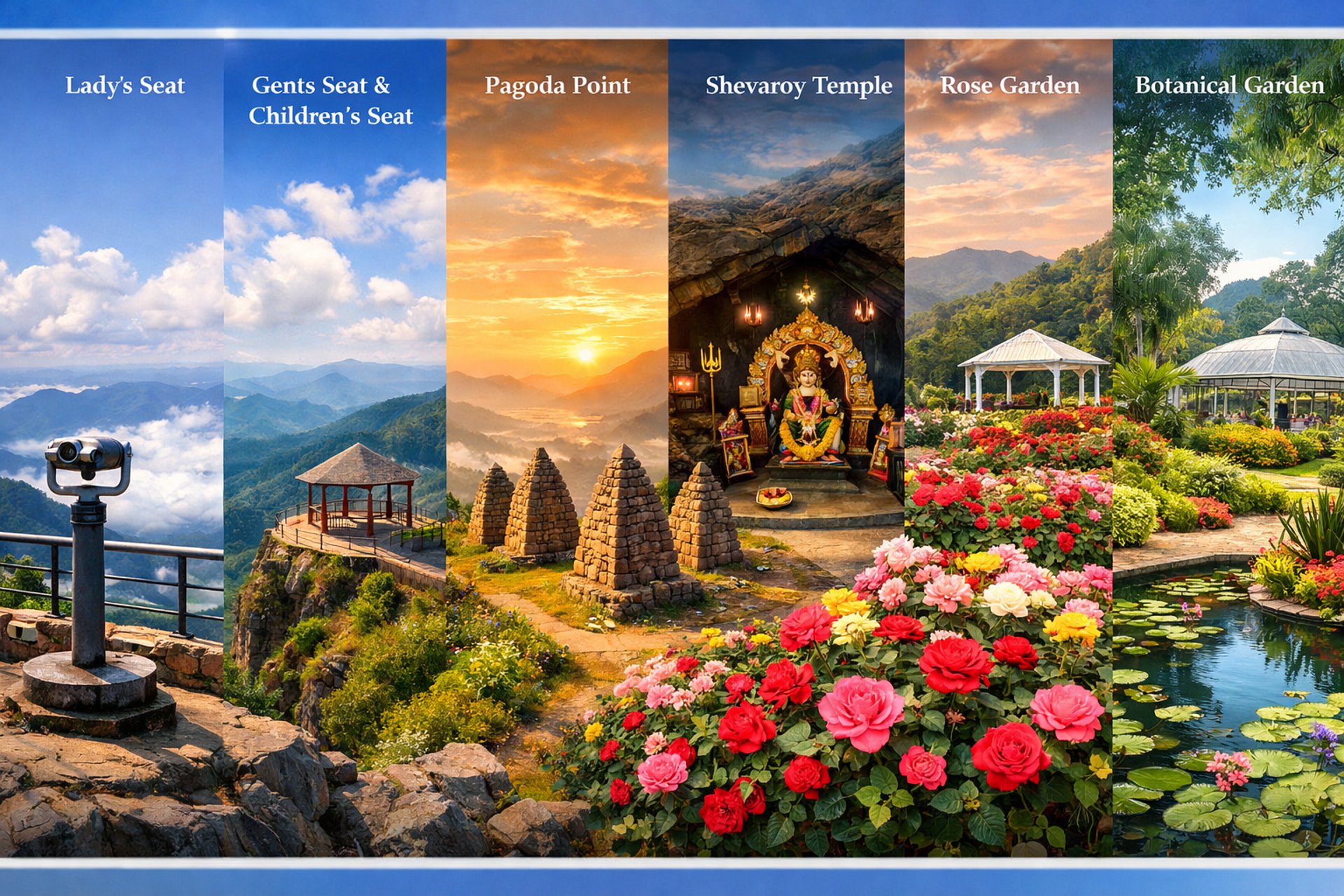 After breakfast, enjoy a full day of sightseeing covering Yercaud’s famous viewpoints and attractions: